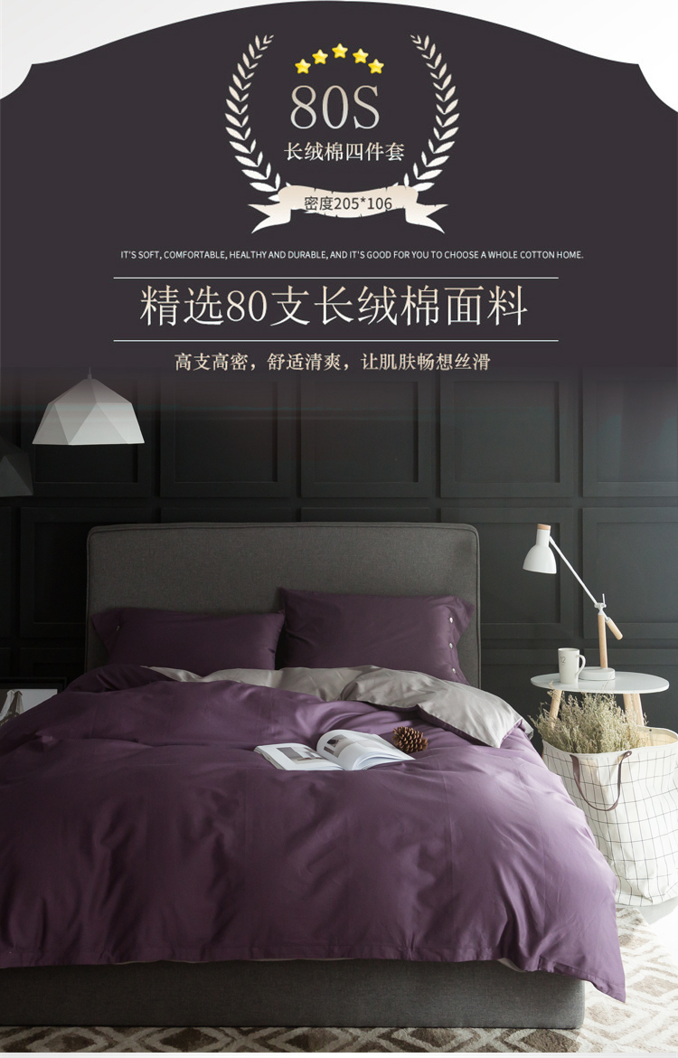 出口欧美80支埃及长绒棉纯棉四件套贡缎全棉纯色简约床上用品1.8m